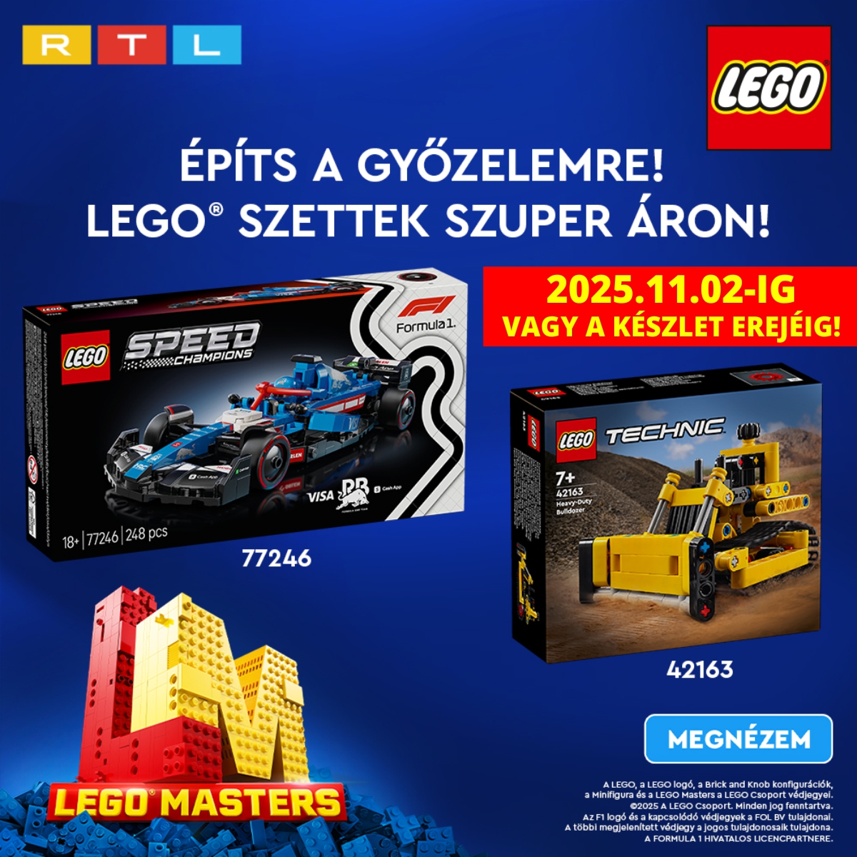Építs a győzelemre! Használd most a MASTERS kuponkódot a linken látható LEGO® F1 és Technic szettekre a 10% kedvezményért. A kuponkódot a vásárlás végén a "kuponkód" mezőbe kell beírni és a gombra kattintva érvényesíteni. A promóció 2025. november 02-án 24.00-ig tart!