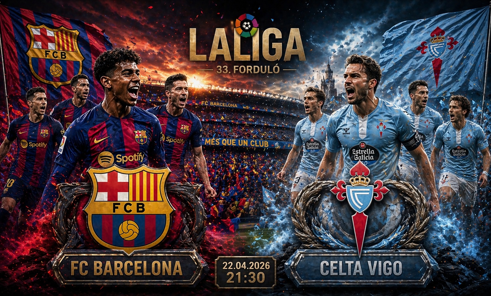 A Barcelona hazai pályán kíméletlen, de a Celta kontrajátéka és Borja Iglesias gólérzékenysége miatt a vendégek bármikor betalálhatnak. A statisztikák alapján a Barca 31 meccsből 26-ot megnyert, ami félelmetes mutató.
