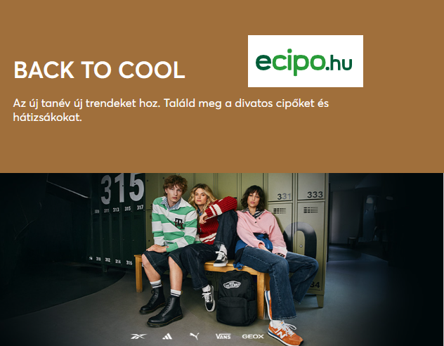Elindult az ecipo.hu nagy ŐSZI AJÁNLATOK kampánya, ahol a legmenőbb cipőket és kiegészítőket szerezheted be hihetetlen kedvezményekkel! A legjobb őszi darabok várnak rád – ne hagyd, hogy elszalasszák a lábad!