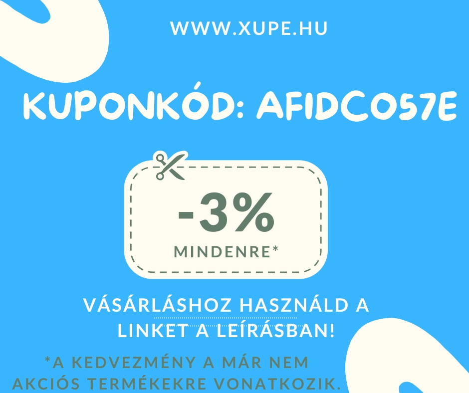 Szuper hír a Xupe.hu rajongóinak! Most 3% extra kedvezményt kaphatsz szinte bármely termékre, ha használod az AFIDCO57E kuponkódot!