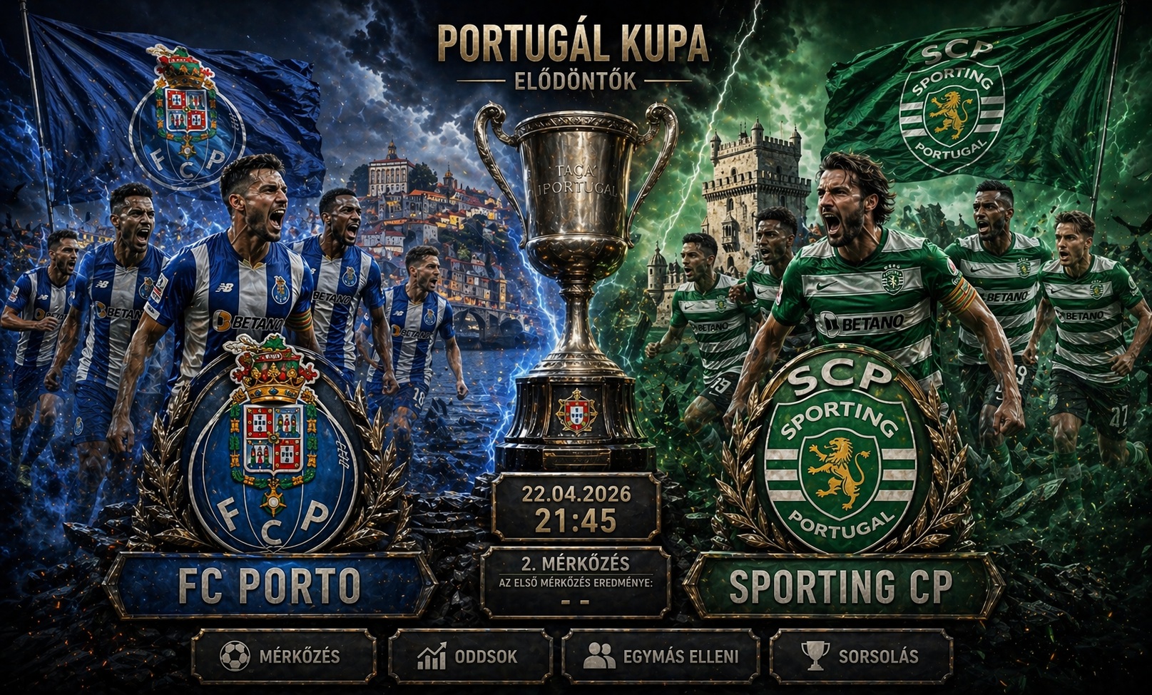 Kimenetel: FC Porto győzelem (A Porto hazai mérlege és a fordítási kényszer miatt).