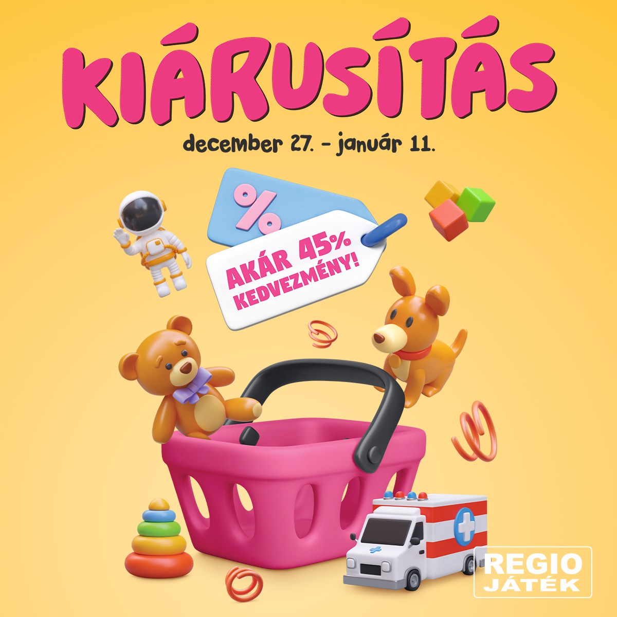 Az akció 2025. december 27. és 2026. január 11. között, illetve a készletek erejéig érvényes az ország összes REGIO JÁTÉK áruházában és a https://regiojatek.hu webáruházban. Más akciókkal nem összevonható, valamint csak lakossági vásárlásra érvényes. A kép illusztráció.
