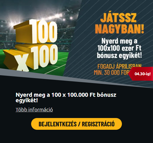 🔞 FIGYELMEZTETÉS: A szerencsejátékban való részvétel 18 éven aluliak számára tilos és büntetendő. A sportfogadás kockázatokkal jár, nem garantál jövedelmet, és a túlzásba vitt játék függőséghez vezethet. Csak annyit kockáztass, aminek elvesztése nem okoz nehézséget a megélhetésedben! 🆘 Ha segítségre van szükséged: ELTE Szerencsejátékos Segélytelefon: 06 80 205 352 (ingyenesen hívható).